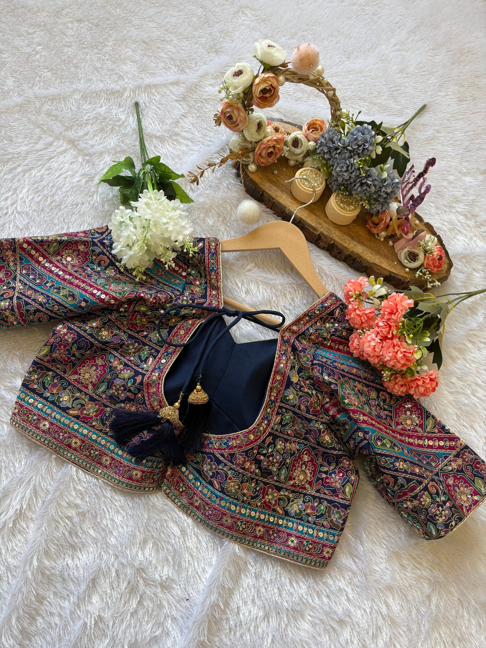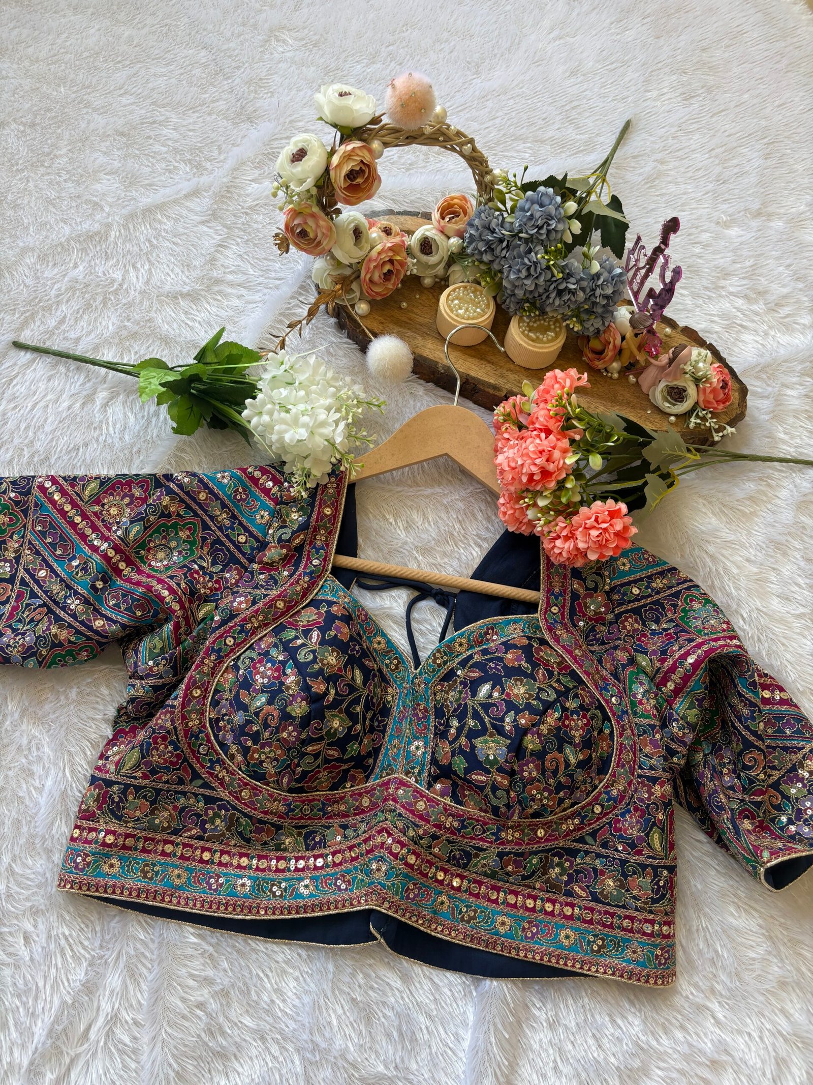 💙 Blouse: Fully stitched padded designer blouse with heavy embroidery