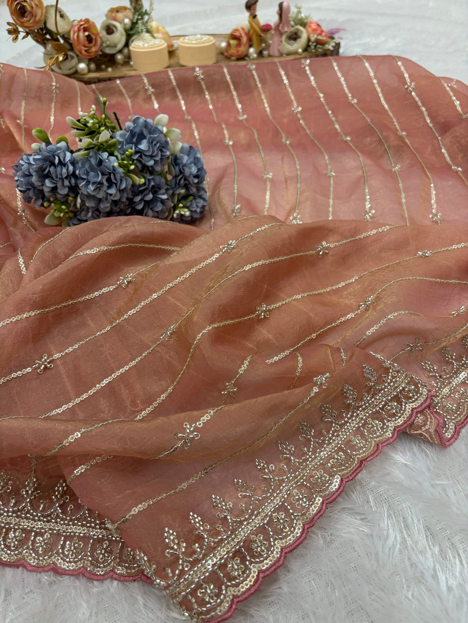 Blush Peach Crush Silk Saree with Zari Elegance