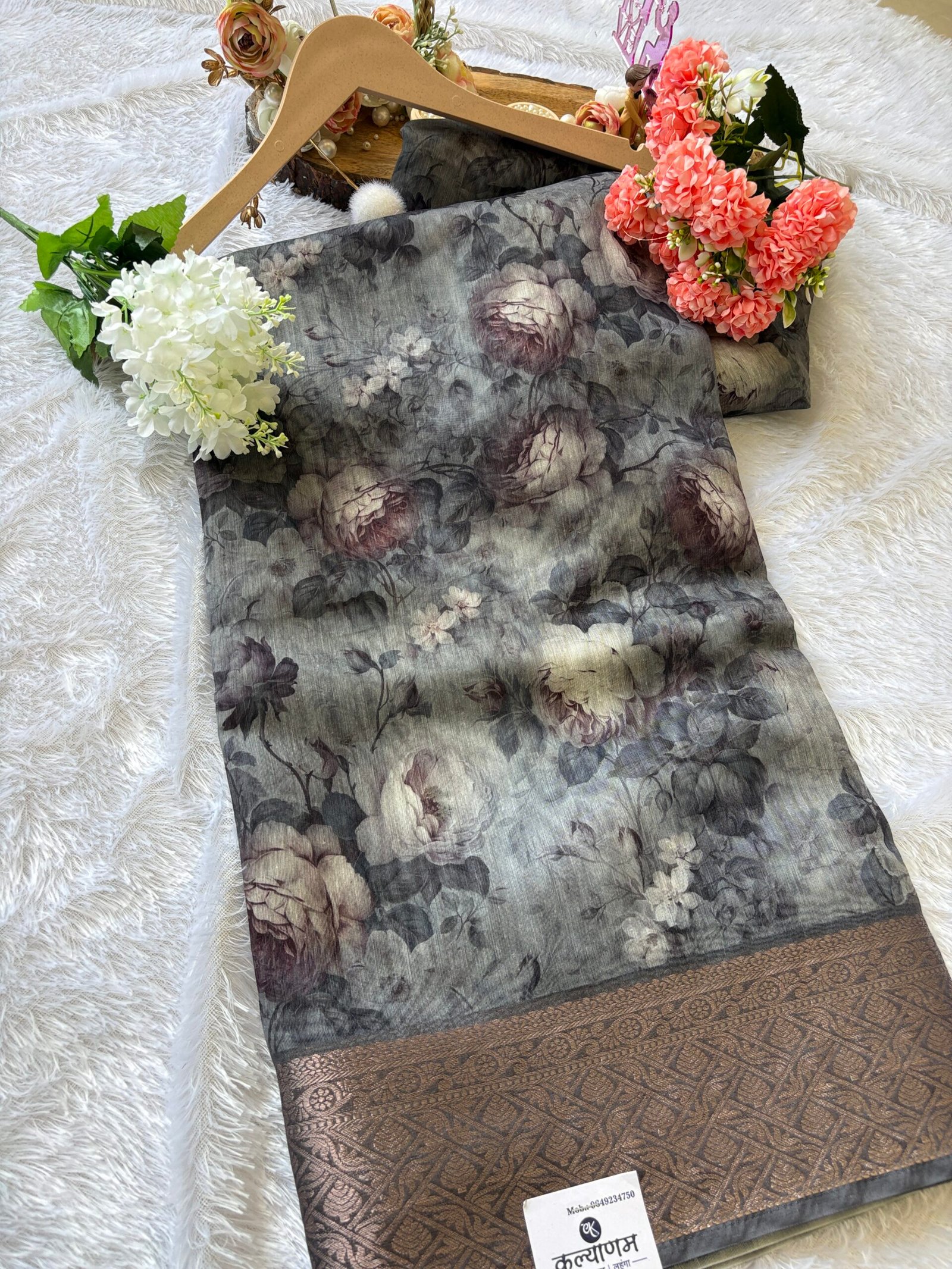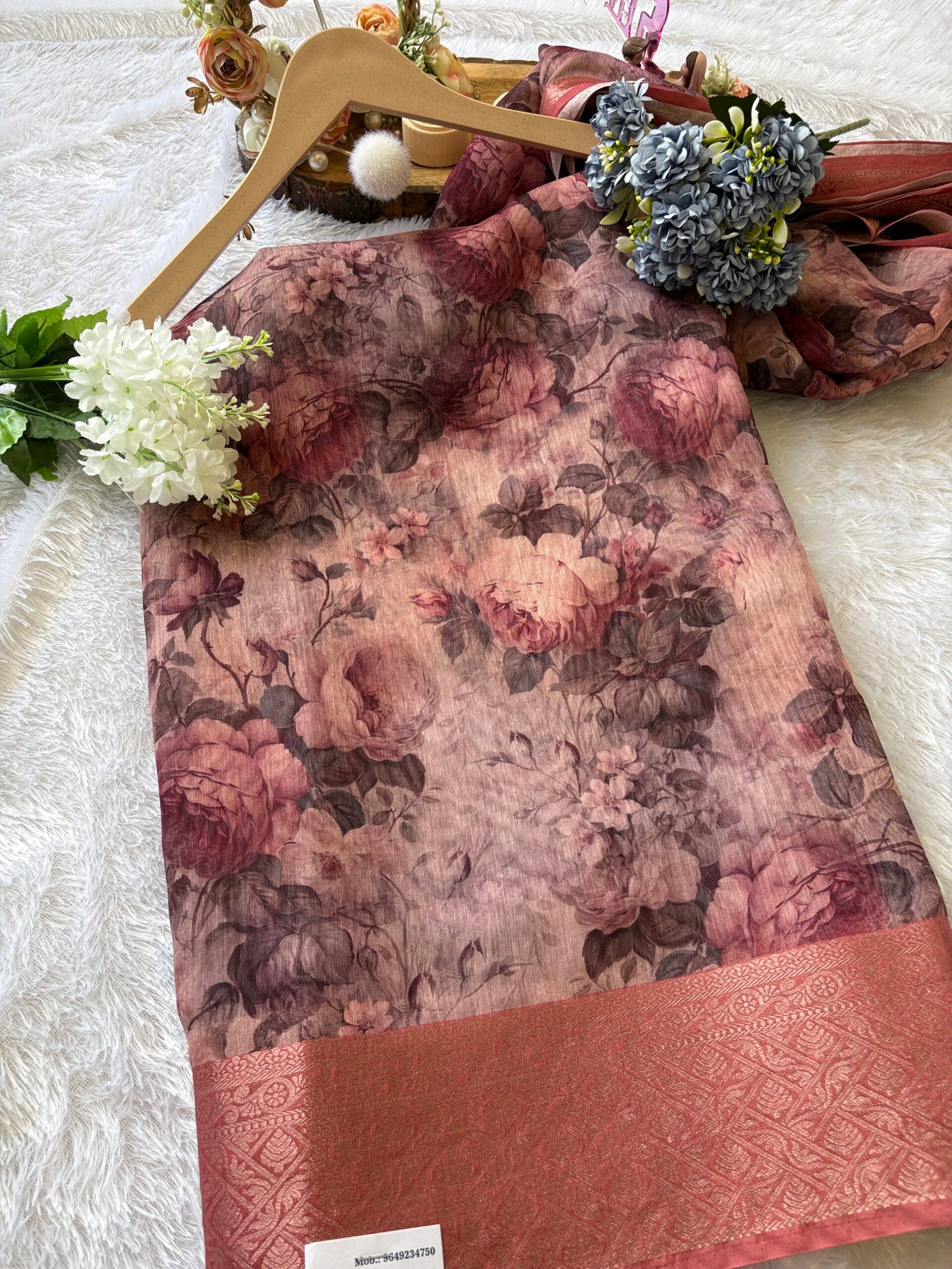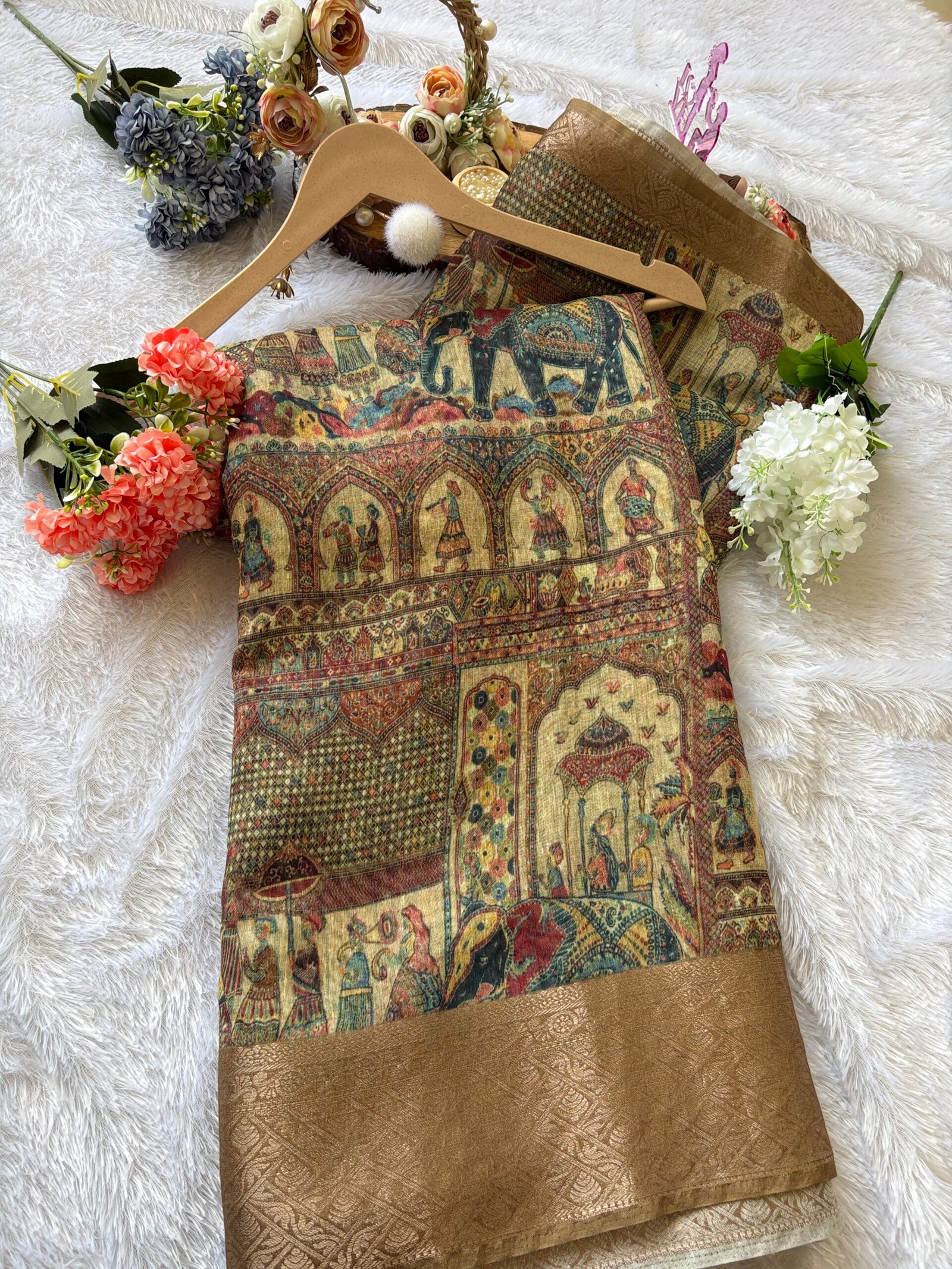 - Work: Printed design with Banarasi woven border