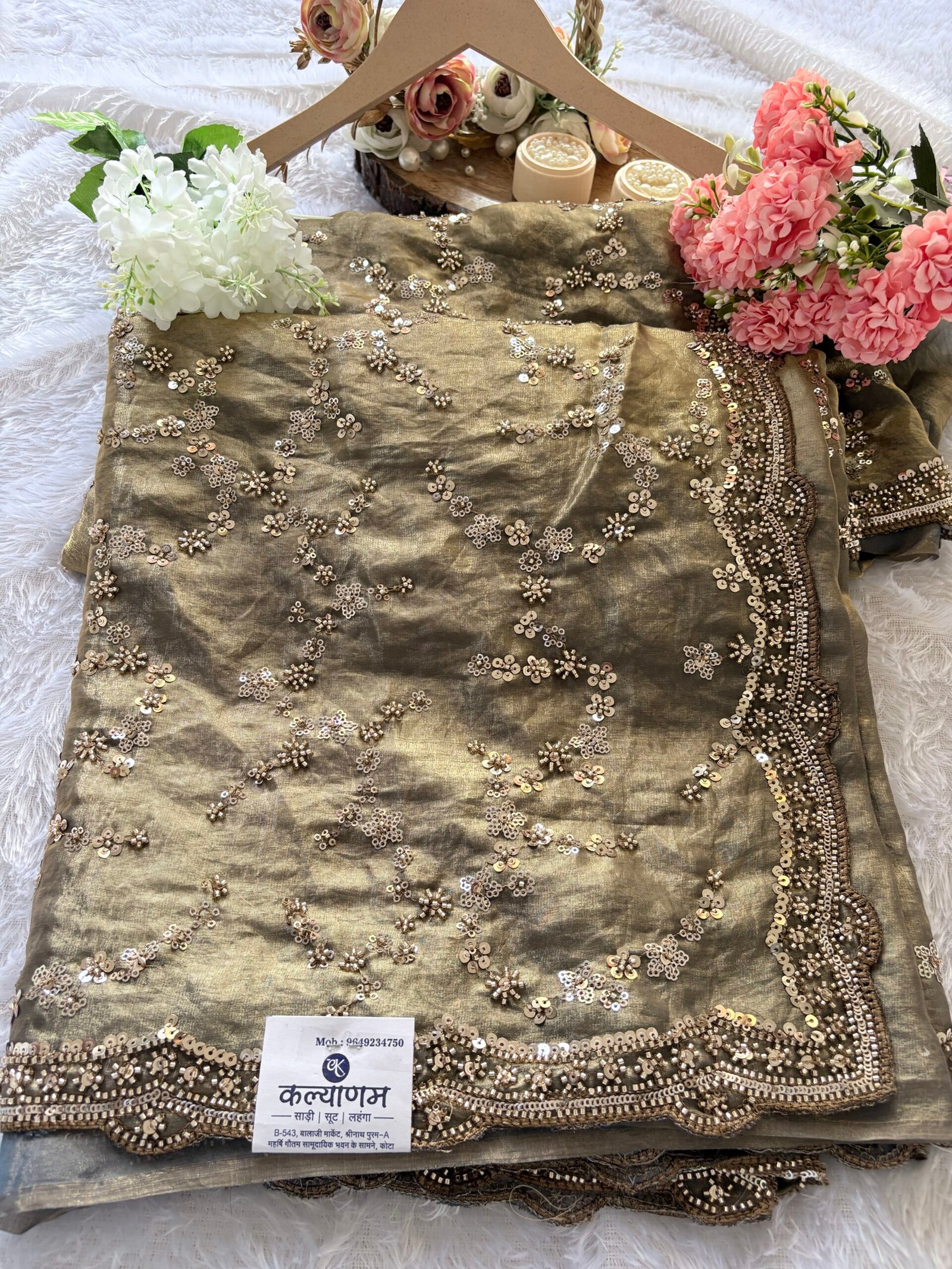 Whether you’re attending a wedding, festive celebration, or party, this saree will make you stand out effortlessly with its classy shine and detailed craftsmanship.